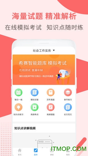 提供社会工作师考试各科目的系统化视频课程,由资深讲师团队精心录制。课程支持免费试听,可根据个人习惯调节播放速度。支持离线下载观看,节省流量消耗。视频内容涵盖考点解析、真题讲解、答题技巧等,知识点讲解深入浅出。课程按章节划分,方便考生针对性学习,是系统复习的优质资源。