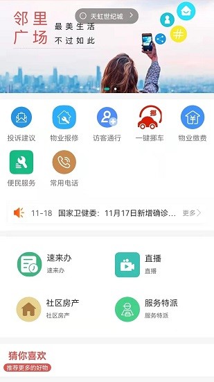 小区通知:采用智能推送算法,重要公告自动置顶,历史记录云端保存,重要社区信息永不遗漏;