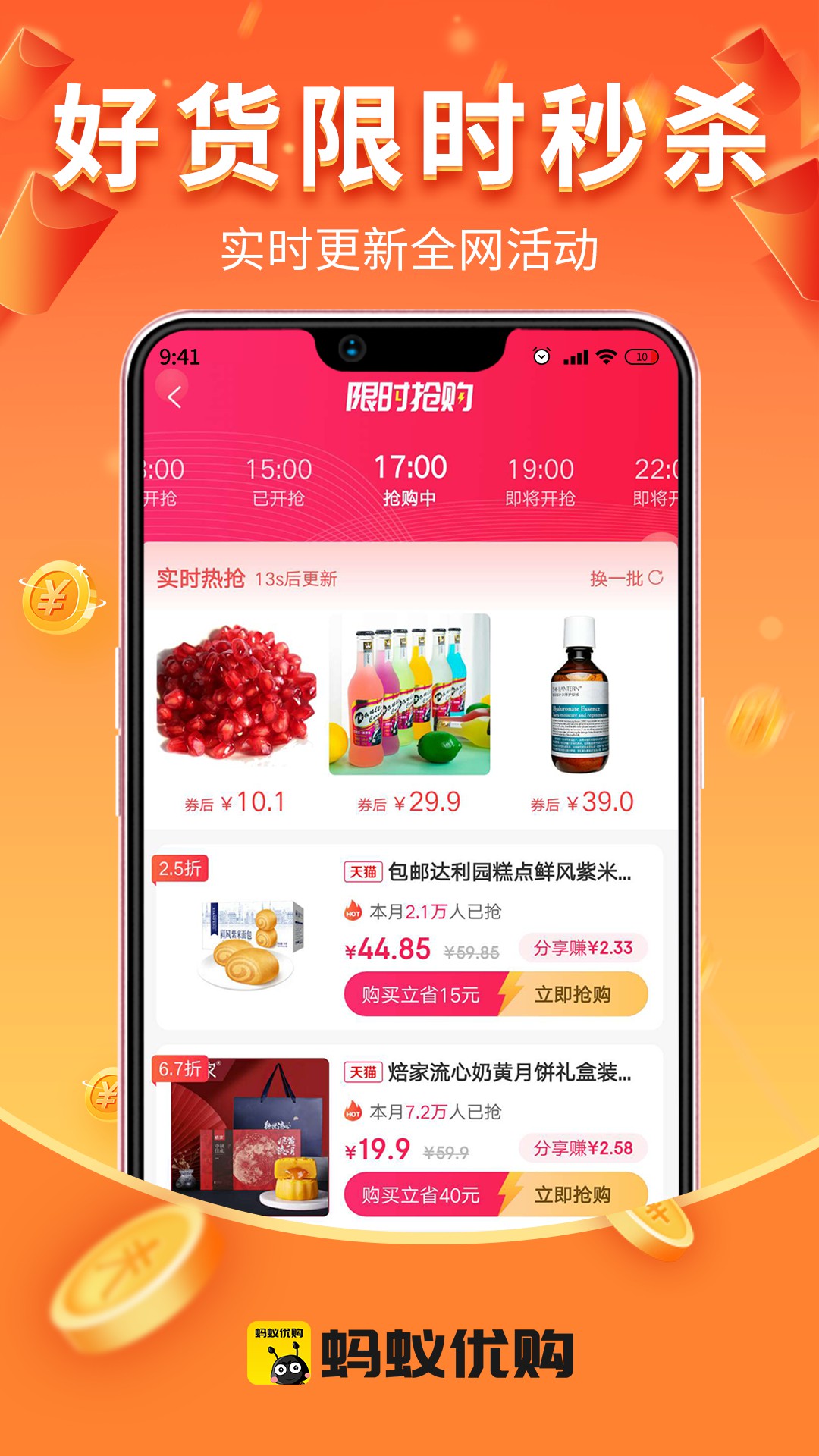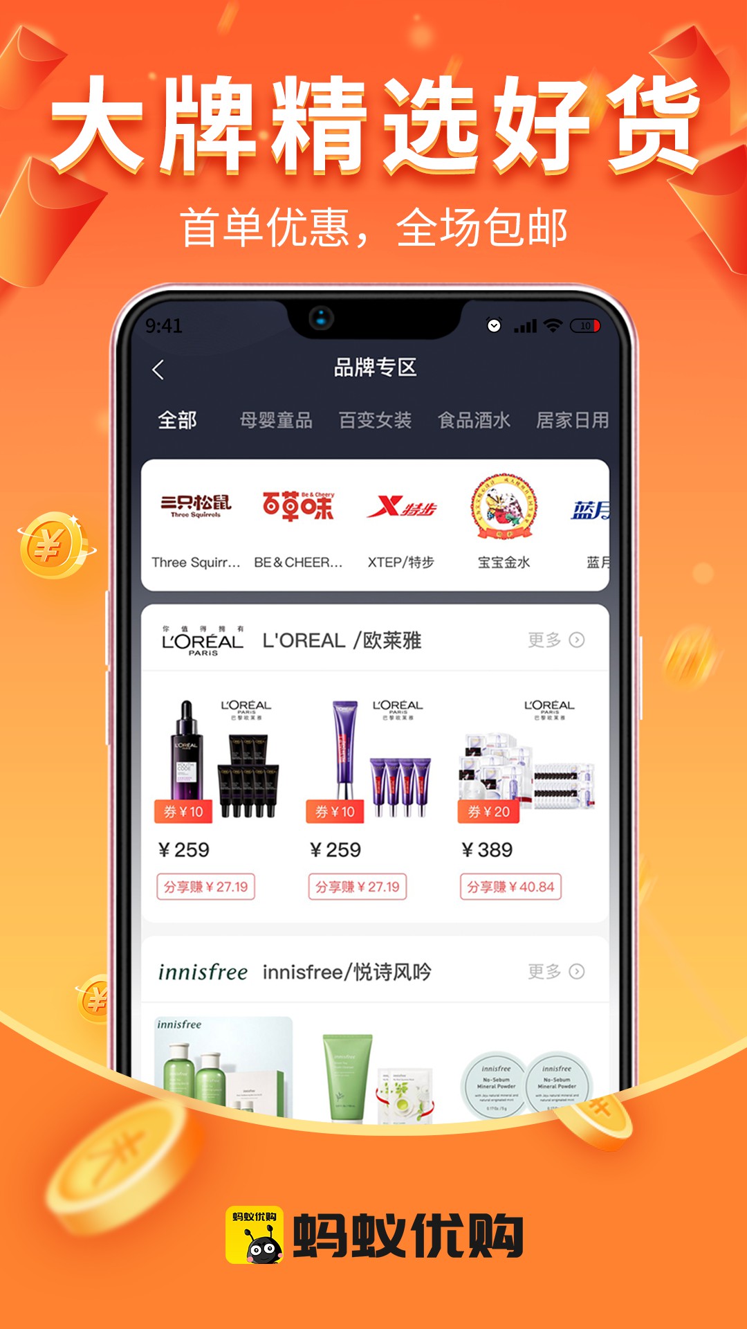 2、海量好优惠券:与8000+品牌建立深度合作,每日释放12万张独家优惠券,包含59减30、199减100等大额券。设置凌晨0点、早10点等6个抢券时段,支持提前预约提醒。