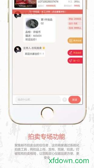 【拍场切换】:拍场同时开拍可快速切换,即使多个拍场来回自如,心仪藏品不再错过。流畅的界面设计让您在不同拍卖会场间切换毫无压力。