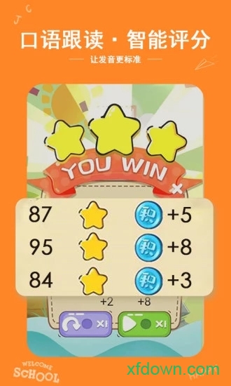 "跟读大闯关"游戏采用先进的语音识别技术,实时纠正发音问题。通过趣味闯关形式,系统训练儿童英语口语表达能力,实现"听力+口语"的同步提升,培养标准发音习惯。