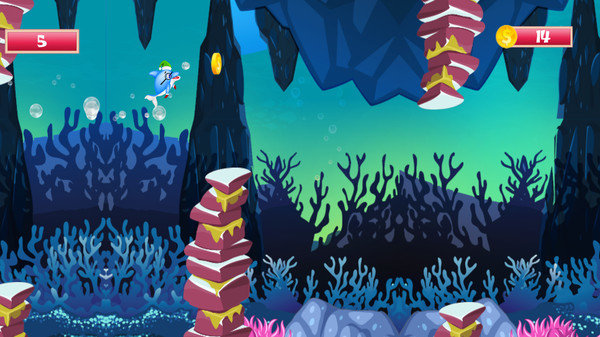 1、游戏中设计了丰富多样的海洋生物和复杂多变的地形,玩家需要灵活操控海豚穿梭于摇曳的海藻群和危险的漩涡之间,体验紧张刺激的躲避玩法;