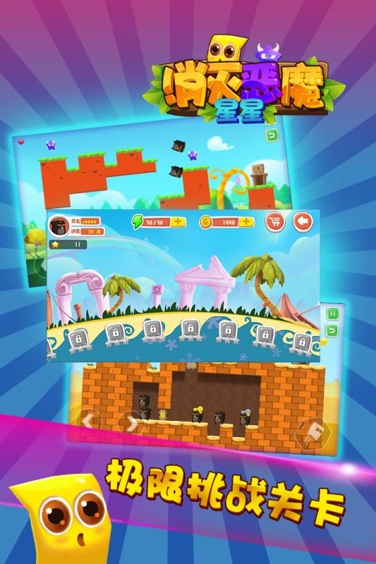 《消灭恶魔星星》是一款2023年下半年全新推出的横版消除手游,打破了传统消除游戏的点击连接玩法,带来耳目一新的操作体验。游戏采用色彩鲜明的卡通画风,玩家需要通过滑动屏幕控制英雄移动,在充满障碍的关卡中收集钥匙、吞噬星星。独特的物理引擎让方块如同真实落在掌心,160个精心设计的关卡涵盖沙漠、海洋等多样场景,配合欢快的背景音乐和英雄魔性笑声,打造出令人上头的休闲体验。无论是想打发碎片时间,还是挑战脑力极限,这款老少咸宜的游戏都能带来持续的新鲜感。