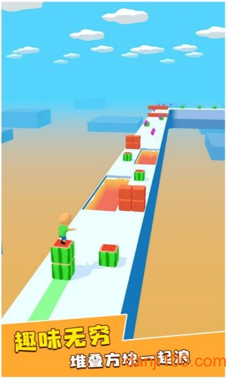 在这款创意十足的堆叠跑酷游戏中,玩家将体验到前所未有的方块冲浪乐趣。游戏以清凉夏日为主题背景,您需要巧妙收集沿途散落的方块,通过精准堆叠来建造通天高塔。随着关卡推进,难度会逐步提升,不仅要收集9种形态各异的立方体模型,还要灵活应对各种障碍挑战。最重要的是,您需要运用娴熟的操作技巧,在保持方块数量的同时突破重重阻碍,最终赢得丰厚的钻石大奖,创造属于自己的攀登纪录!