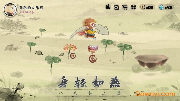 在这款游戏中,你将看到意想不到的场景——憨态可掬的猪八戒施展轻功水上漂!我们精心打造了古典水墨风格,将中国传统艺术与现代游戏玩法完美融合。游戏背景取材自中国古代经典著作,每一帧画面都如同一幅精美的水墨画作。猪八戒这个经典角色经过皮影戏风格的重新演绎,既保留了传统韵味,又增添了现代幽默感,让玩家在游戏过程中既能感受传统文化魅力,又能享受轻松愉快的游戏体验。