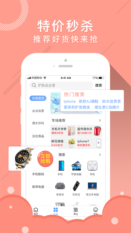 首页采用全新UI设计,简洁大气的界面布局带来更流畅的操作体验;限时特价专区每日更新,精选优质商品超值秒杀,让您享受真正的实惠;智能定位系统精准推荐周边3公里内的吃喝玩乐好去处,发现城市生活新乐趣;个人中心信息展示全面升级,消费记录、优惠券、会员积分等信息一目了然。此外,平台还新增了社区互动功能,用户可以分享消费心得,参与话题讨论,打造更丰富的社交化购物体验。
