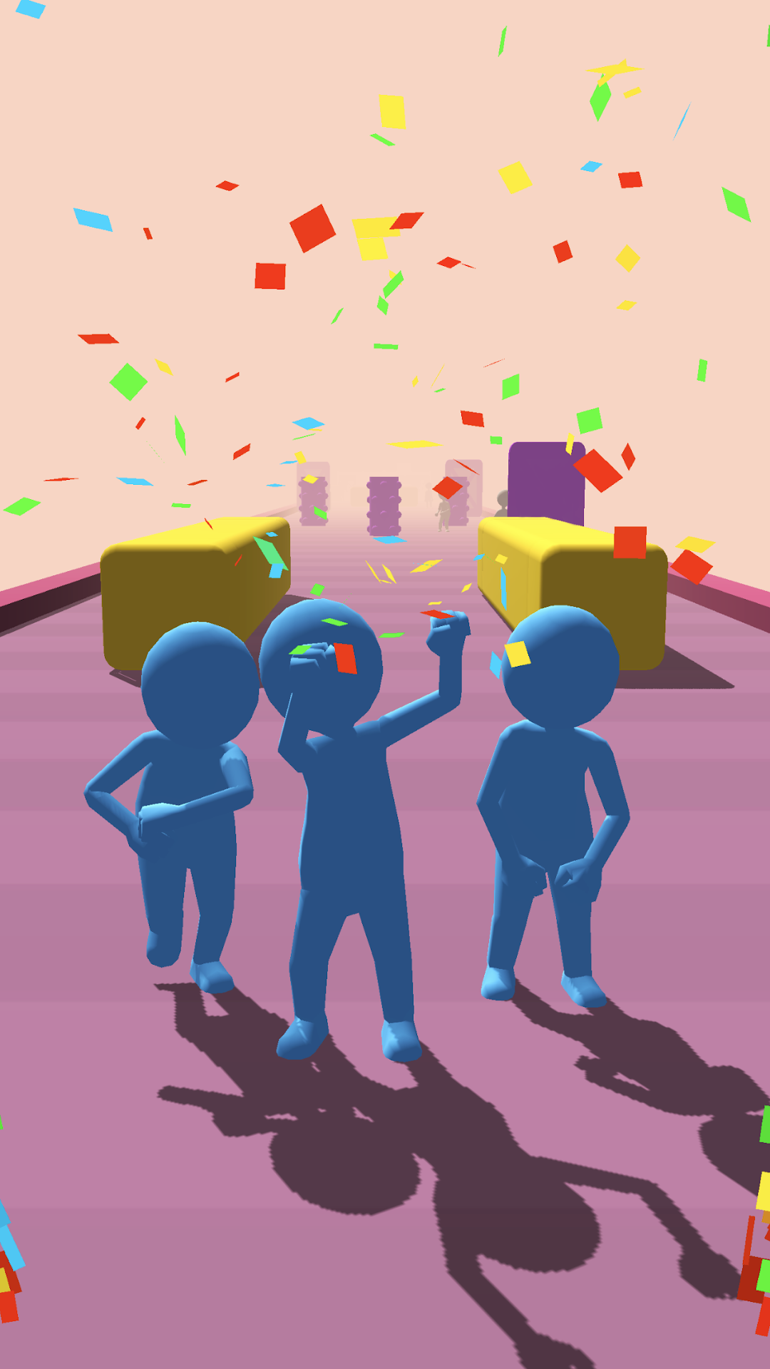 游戏采用次世代3D渲染技术,每个橡皮人都拥有独立的物理碰撞体积,当大规模人群移动时会形成波浪般的壮观场面。独特的"感染机制"允许玩家通过擦碰将普通NPC转化为队友,但要注意身着反光服的警卫会反向削减你的队伍。创新性地加入了实时经济系统,闯关过程中收集的金币不仅能解锁新角色皮肤,还能购买临时加速、防护罩等道具。每周限时开放的"疯狂购物节"模式中,带领团队抢购特价商品可获得十倍收益。游戏还支持自定义角色装扮系统,从炫酷墨镜到滑稽发型,让你的领头人成为全场焦点。