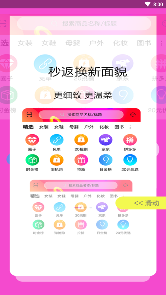 秒返APP是一款专为精打细算的消费者打造的手机购物神器。平台汇聚了服装、母婴、家电、生鲜等全品类商品,所有商品均经过严格筛选,确保正品低价。通过智能比价系统,用户可以轻松找到全网最低价的优质商品。新用户注册即可领取现金红包,每日还有限时秒杀、9.9包邮等超值活动。独创的一键搜券功能让您购物时自动匹配最优优惠券,最高可省90%的开支。无论是日常购物还是大件采购,秒返APP都能为您提供最省钱的购物方案。