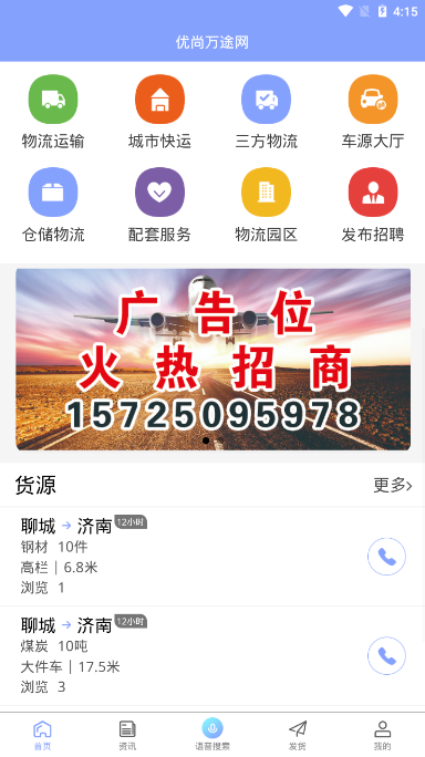 优尚万途网APP是一款专注于物流行业的专业信息服务平台,致力于为用户提供高效便捷的物流解决方案。平台整合了物流查询、行业资讯、车源匹配、货源对接以及物流园区信息等核心功能,打造一站式物流服务生态圈。目前服务范围覆盖德州和聊城地区,通过智能化技术手段帮助用户优化物流运输流程,降低运营成本,提升行业效率。无论是个人货主还是物流企业,都能在这里找到精准的运输资源和专业的配套服务。