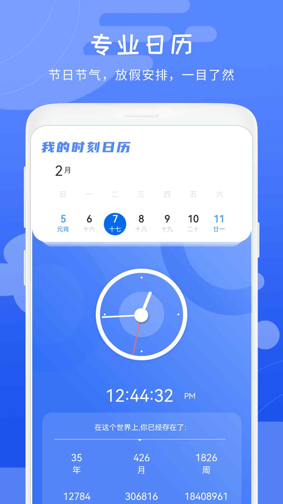创新的生命计时器功能,记录您在这个世界的每一分每一秒。支持自定义重要纪念日倒计时,如生日、节日等,可设置提醒功能。界面显示精确到毫秒,背景可自由更换,让每个重要时刻都充满仪式感。