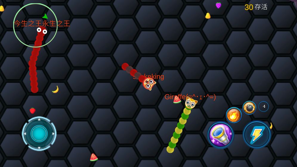 游戏允许玩家为自己的蛇取一个独特的名字,这个名字会显示在蛇头上方,让其他玩家都能看到你的专属称号。所有玩家的蛇头上都会显示个性化的名字,这大大增加了游戏的社交互动性。游戏提供了多种不同的玩法模式,其中最受欢迎的是经典模式,此外还有限时挑战、团队对战等多种玩法,满足不同玩家的游戏需求。