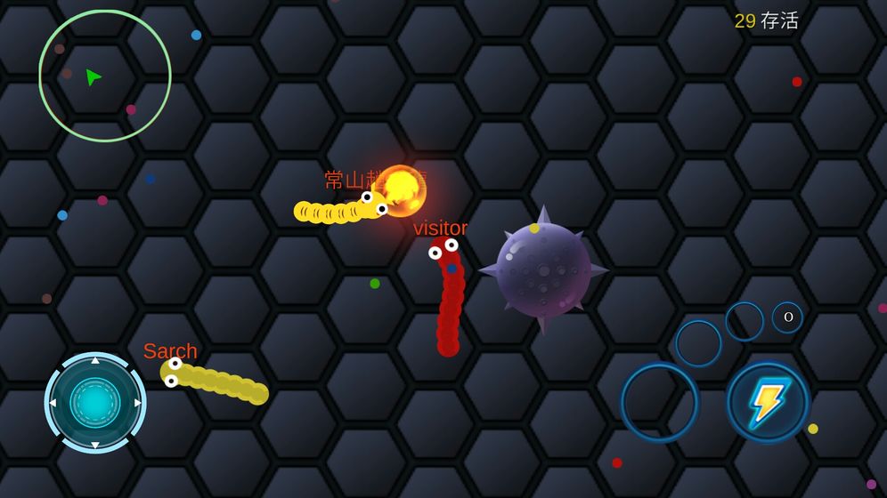 在游戏中,玩家需要在竞争激烈的战场中生存下来,只有坚持到最后的玩家才能获得"蛇王"的称号。每次遇到的对手蛇都拥有不同的颜色和独特的外形,它们的移动速度非常快,身体灵活多变,给玩家带来极具挑战性的对战体验。游戏场景中会随机出现大量灵活的蛇,数量之多让战场充满变数,玩家需要时刻保持警惕,灵活应对各种突发状况。