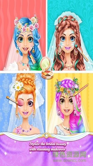 接下来是妆容设计环节。玩家可以从多种眉形、眼影、口红和美瞳中进行选择,为公主打造精致的新娘妆容。游戏提供了丰富的色彩搭配方案,玩家可以根据自己的审美自由组合,创造出独特的妆容效果。