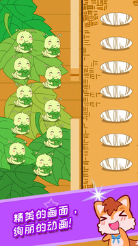 1、独创农场经营系统,玩家可通过出售蚕茧获取金币,用于扩建桑园或解锁稀有蚕种,形成良性经济循环。2、游戏内置详尽的图鉴系统,收录20+蚕类品种的详细资料,玩家在娱乐中能学习到丰富的昆虫知识。3、创新性地将传统养蚕与现代合成玩法结合,高品质蚕种可产出特殊丝线,用于制作精美服饰道具,大大增强游戏可玩性。