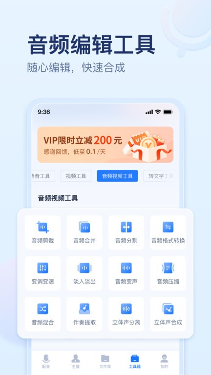 智能朗读功能通过AI技术将大段文字快速转换为音频,转换速度快且准确率高。内置的音频编辑模块支持音频修改、音量调节、裁剪、变声、拼接、提取和变速等操作,功能全面且易于使用。此外,软件还支持中英文及多地方言的配音,内置多种逼真人声,满足不同用户的语音制作需求。