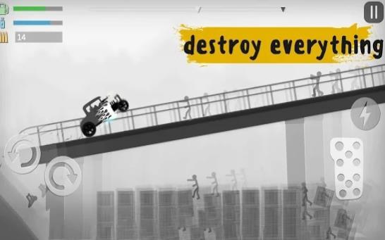 3、带给你最为真实的物理效果,游戏的画面内容非常的震撼。虽然采用简约的火柴人风格,但碰撞、碾压等物理效果都经过精心设计。车辆撞击时的震动感、建筑倒塌的碎片效果都极具冲击力,带来身临其境的破坏体验。