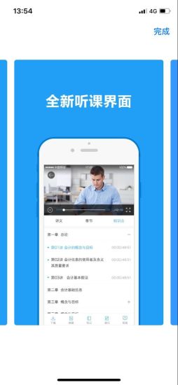 1.高清视频课程学习:软件提供超过1000小时的高清视频课程,内容涵盖会计基础、财务管理、税法等核心领域。课程按照考试大纲和难度分级,用户可根据自身基础选择初级、中级或高级课程。所有视频均支持0.5-2.0倍速调节,并可以下载到本地离线观看,特别适合通勤等碎片时间学习。每节课后还配有随堂测试,帮助用户及时巩固所学知识。