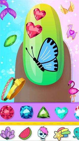 3、提供了创意性的游戏玩法,可通自身的创意能力自由设计美甲款式。游戏鼓励玩家发挥想象力,没有固定模板限制,让你的每个设计都充满个性。