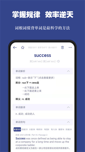 3、独家研发的词根拆解工具可一键分析单词构成,配合词源故事和记忆口诀,让复杂词汇变得生动易记;