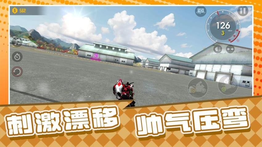 1、控制摩托完成漂移过弯,在赛道上超越其他选手。游戏采用独特的双摇杆操控系统,左手控制方向与平衡,右手管理油门与刹车,需要玩家协调配合才能完成完美的漂移动作。每个弯道都设有最佳入弯点提示,掌握时机才能保持高速过弯。