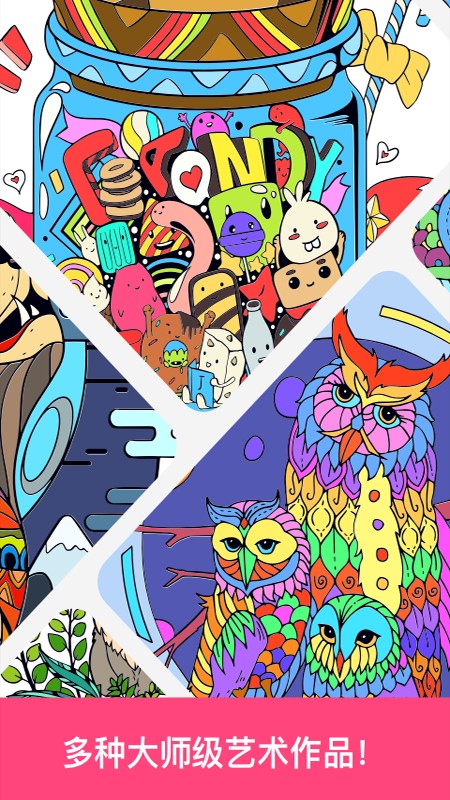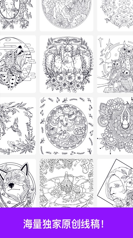 2、成功登录后进入软件主页,这里会展示各种精美的涂色模板,包括动物、风景、人物等多种主题分类。