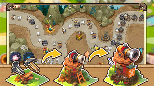 游戏提供了数十种特色鲜明的作战单位,从近战系的扳手、锤子、斧头到远程的狙击枪、火箭炮,每种武器都对应独特的攻击方式和战术价值。玩家可以通过兵种搭配创造出无数种战斗组合,比如用野蛮人冲锋陷阵的同时,安排法师在后排进行火力支援。随着等级提升,还能解锁更强大的传奇武器,让你的军团所向披靡。