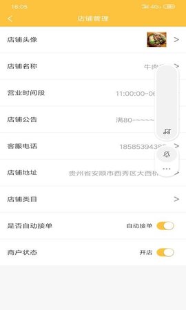 1、店铺管理中心提供一站式设置,从基础信息到营业时间都能灵活调整,让商家轻松打造个性化线上店铺形象。2、菜品管理功能支持批量上传和分类,可以按主食、小吃、饮品等类别整理菜单,方便顾客浏览选择。3、智能菜品分类系统不仅能提升顾客点餐体验,还能帮助商家分析热销品类,优化产品结构。4、店铺头像和名称可随时更换,支持上传高清图片展示店铺特色。5、客服电话设置功能让顾客遇到问题时能快速联系商家,提升服务响应速度,建立良好的客户关系。