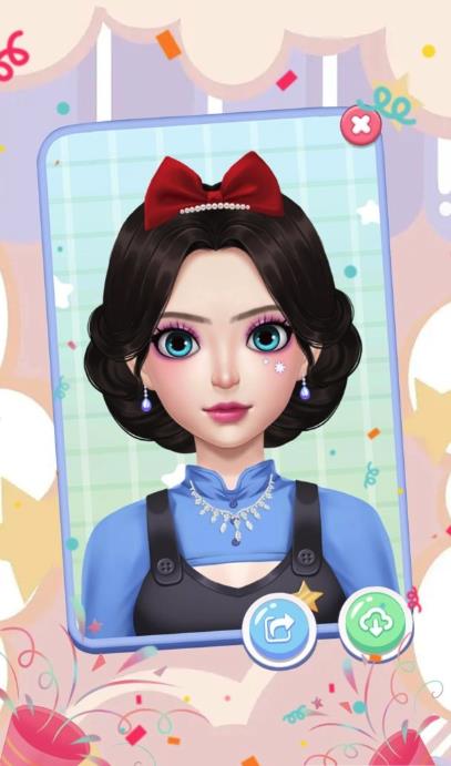 1、和全国玩家分享你的创作,还能够将美丽瞬间拍摄下来。游戏内置强大的社交分享功能,你可以将自己的得意作品上传到社区,与其他玩家交流化妆心得,互相点赞评论,还能参加每周举办的时尚造型大赛,赢取专属限定奖励。