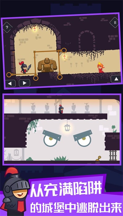 游戏讲述了一个扣人心弦的故事:一个邪恶的反派绑架了公主,并在城堡中设置了重重机关和陷阱来阻挠救援行动。玩家将扮演一位勇敢的骑士,在危机四伏的城堡中展开冒险。游戏融合了逻辑解谜与平台跳跃元素,设计了上百道精心构思的谜题关卡。从简单的机关到复杂的逻辑谜题,每一关都充满挑战性。玩家需要在神秘的走廊中探索,以独特的思维方式解开各种谜团,最终找到通往公主所在塔楼的路径。