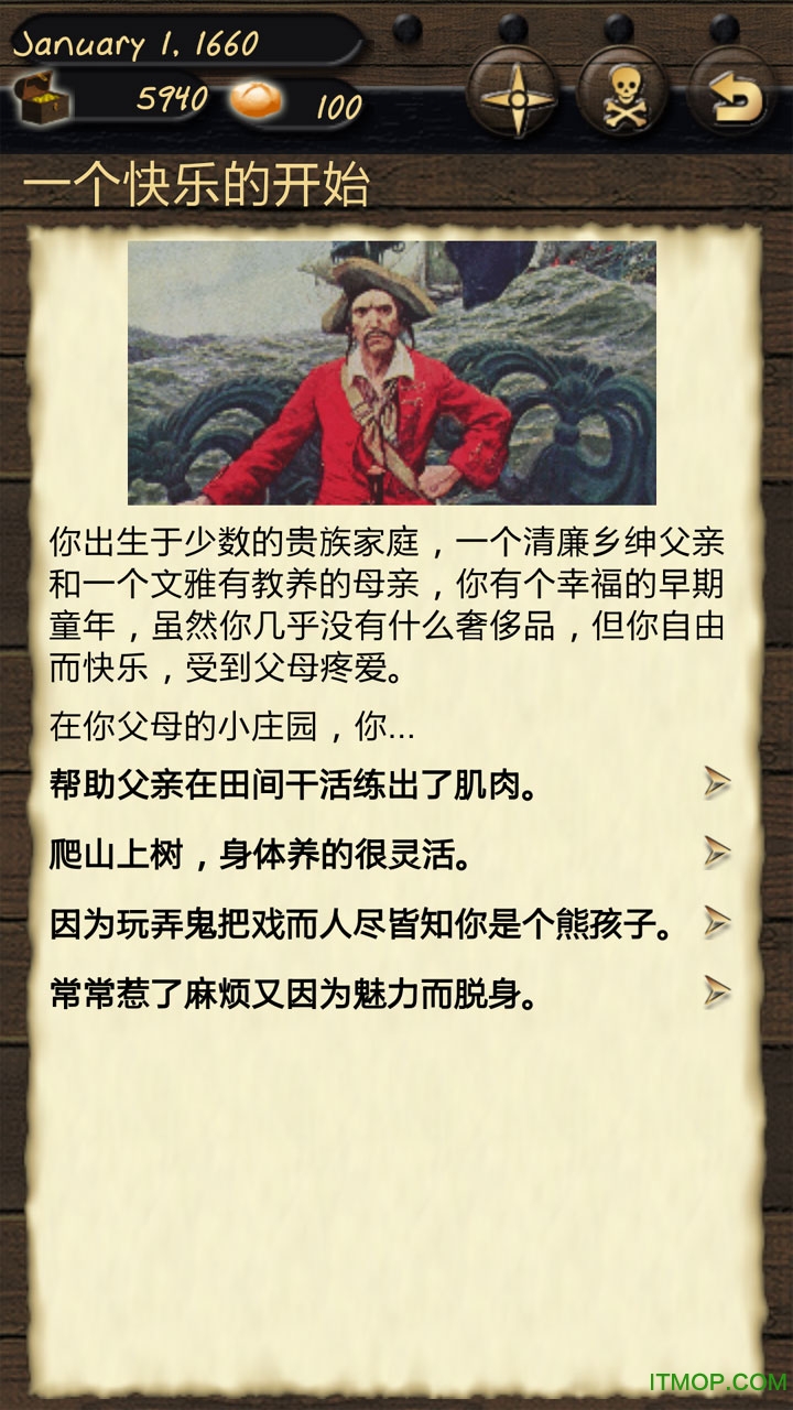 海盗与商人中文版(PiratesandTraders)是一款以16世纪加勒比海为背景的纯文字航海策略游戏。在这个开放世界中,玩家将扮演一位野心勃勃的船长,通过200多个精心设计的剧情事件,体验从默默无闻到称霸七海的传奇人生。游戏采用独特的文字冒险形式,将航海贸易、海战掠夺、城市经营等玩法完美融合。超过50个可交易港口、100多种特色商品、20余种可升级船只,配合动态经济系统和随机事件,为玩家带来极具深度的策略体验。完全汉化的文本让中国玩家能够无障碍享受这场大航海盛宴。