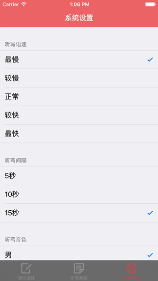 4、个性化参数设置:支持自由调节语速、间隔时间和男女声发音,满足不同年龄段学生的学习需求。家长可根据孩子的实际水平设置最适合的练习难度,实现因材施教。