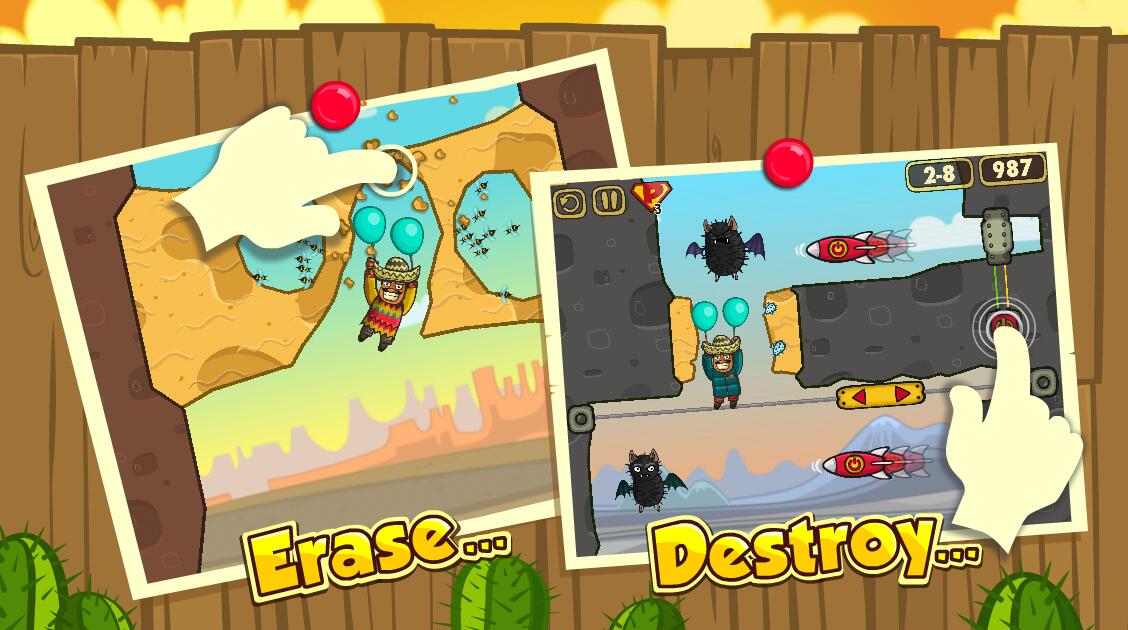 游戏包含6个各具特色的冒险地点(德克萨斯州、西伯利亚、西藏、秘鲁、北极、阿富汗)和120个精心设计的关卡,后续还将持续更新更多精彩内容!基于物理引擎的互动玩法让游戏充满真实感,玩家可以通过擦除、旋转、吹动、爆炸等多种方式帮助潘乔不断攀升。但要注意,这款游戏极易让人上瘾!你还可以邀请家人朋友一起加入,共同体验这款充满欢乐的冒险游戏。