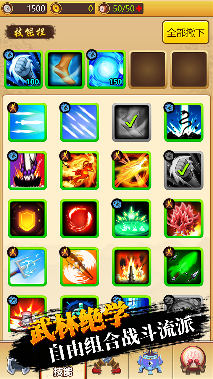 1、游戏里的武学分为许多不同的派别,枪法、腿法、刀法、拳法全部都可以学习,每种武学都有独特的招式特效和成长路线,玩家可以根据个人喜好自由搭配组合;
