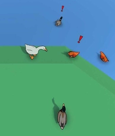 1、作为领地霸主,你需要用翅膀拍打、高声鸣叫等方式驱逐闯入的鸭子群,保护自己的池塘。随着关卡推进,对手会升级为携带武器的愤怒农夫,这时就要活用场景中的障碍物进行周旋。