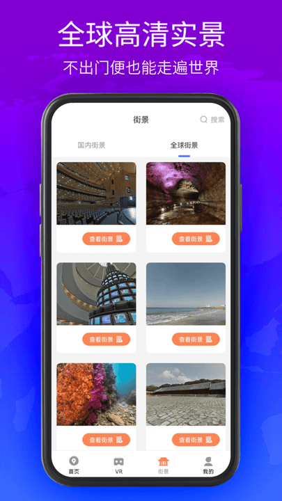 3.VR全景:全方位vr全景观看,720度查看,沉浸式足不出户看世界。用户只需转动手机即可自由切换视角,配合重力感应功能,创造出身临其境的探索体验,特别适合旅行前做功课或回忆去过的地方。