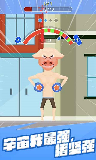 宅男变身记是一款充满趣味与挑战的健身主题手机游戏。游戏中,你将扮演一位决心改变自我的宅男,通过坚持不懈的锻炼,从瘦弱的身材逐渐蜕变为肌肉发达的硬汉。游戏采用简单易上手的操作方式,只需轻触屏幕控制指针,在合适的时机松开手指即可完成训练。随着训练的深入,角色的肌肉会不断增长,形象也会发生明显变化。游戏不仅还原了真实的健身过程,还加入了暴走模式、装备升级等丰富玩法,让玩家在轻松愉快的氛围中体验健身的乐趣。无论是想打发时间,还是寻找一款独特的放置类游戏,宅男变身记都能带给你不一样的体验。