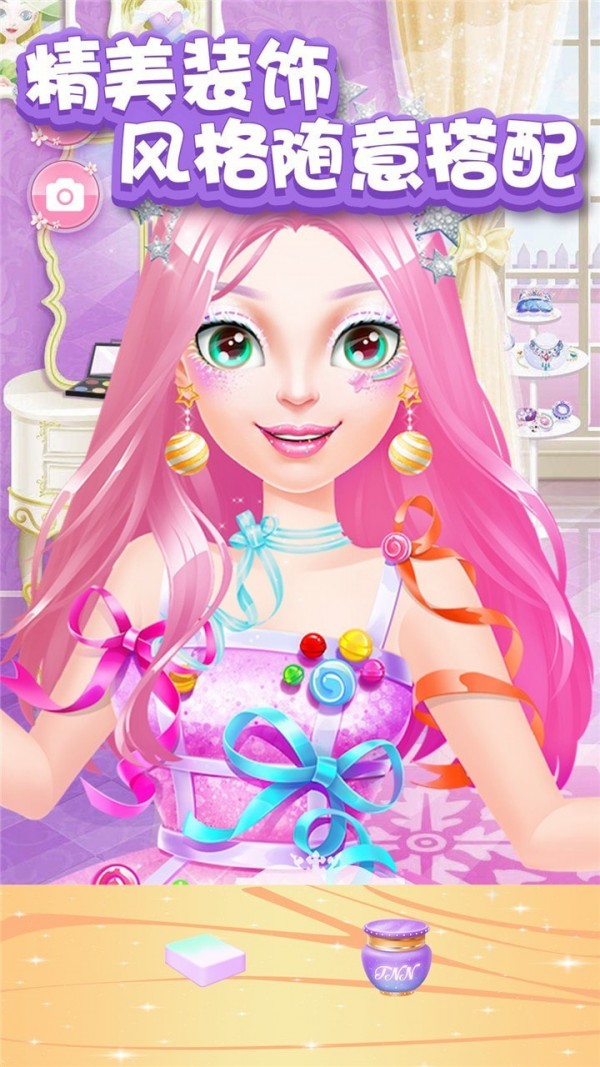 《甜心公主化妆世界》是一款专为少女打造的梦幻换装化妆游戏,它将带你进入一个充满浪漫与创意的时尚王国。在这里,你可以尽情发挥想象力,为三位风格迥异的甜心公主设计独一无二的造型。游戏提供数百款精美服饰、华丽饰品和多样妆容选择,从优雅礼服到俏皮日常装,从精致发饰到闪耀珠宝,每一件单品都能让你打造出心目中的完美公主。无论是清新自然的邻家女孩,还是高贵典雅的皇室风范,你的审美眼光将在这里得到充分展现,让每位公主都成为最耀眼的存在!