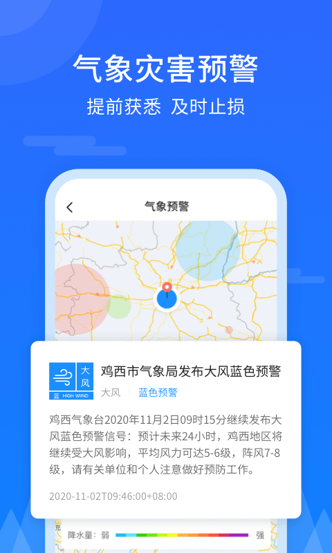 2、天气预警通知:应用建立了完善的极端天气预警机制,当监测到台风、暴雨、暴雪、沙尘暴等恶劣天气时,会通过推送通知、短信提醒等多种方式及时告知用户。预警信息包含详细的防范建议和应对措施,帮助用户提前做好防范准备,最大限度降低恶劣天气带来的影响。