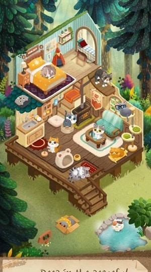 房间内的各种装饰和猫咪的玩具也是需要玩家拾取。游戏设置了丰富的收集要素,从森林里可以找到毛线球、逗猫棒等玩具,还能发现稀有材料制作豪华猫爬架。在猫咪饿的时候玩家要去湖边进行钓鱼将猫咪喂饱。真实的生存系统要求玩家定期为猫咪准备食物,不同品种的猫咪还有各自的饮食偏好。所有的猫咪将会成为玩家世界里的一部分。随着游戏进程,玩家可以解锁猫咪图鉴,了解每只猫咪的习性,建立深厚的情感羁绊。