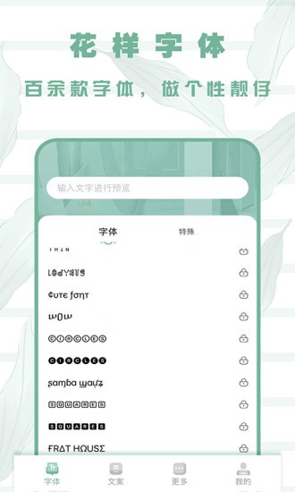 嗲猫花样字体软件安卓版是一款专为追求个性化的用户打造的创意字体应用。它拥有海量精美的花样文字素材库,包含各种特殊符号、艺术字体和潮流文案,让你的社交表达更加生动有趣。无论是微信聊天、QQ互动,还是朋友圈发文、个性签名,都能轻松打造与众不同的视觉效果。应用还贴心准备了时下热门的网络流行文案,解决你"词穷"的烦恼,一键复制即可使用。操作简单便捷,支持多种手机型号,快来下载体验,让你的文字瞬间变得炫酷吸睛!