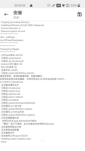 6、当LSPosed界面显示"已激活"状态时,表示框架已成功刷入系统,可以开始安装功能模块。