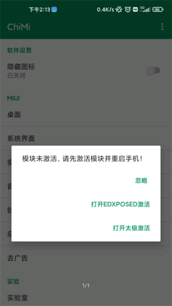 4、安装完成后重启设备,在通知栏点击LSPosed图标进入管理界面(如未显示,可通过拨号键输入*#*#5776733#*#*进入)。