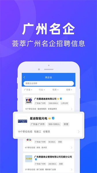 找工作:平台整合广州地区海量优质岗位资源,覆盖各行各业,满足不同求职者需求。