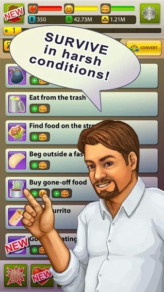 2、作为一个流浪汉,乞讨是必备的生存技能。你需要学习如何选择最佳乞讨地点,如何打动路人的同情心,还要注意避开城管人员的巡查。不同地区的居民对乞讨者的态度也各不相同,需要你仔细观察和适应。