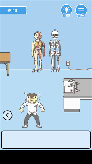 第八关:骷髅架重组时要注意关节朝向,错误的拼接会触发警报。插头需要先擦拭干净才能插入插座。