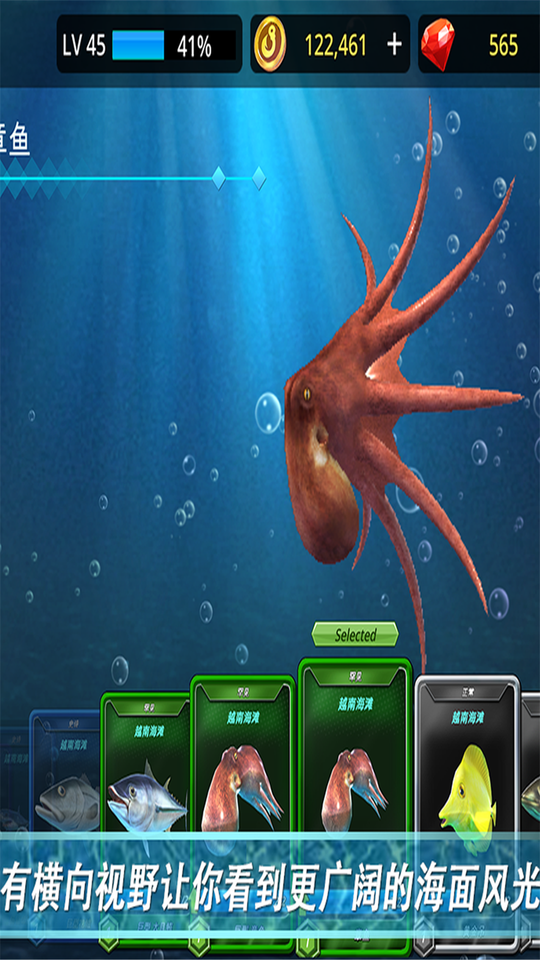 5、丰富挑战:设置多种难度任务,从普通鱼类到深海巨怪,满足不同水平玩家需求。