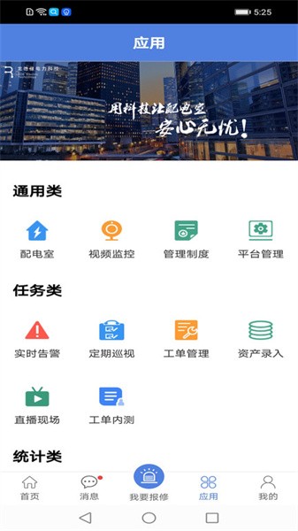报修模块:通过两端的互通响应,提高了配电室故障报修的速度,各流程监控,确保线上线下维修的可视化。支持故障等级自动分类,可附加现场照片和视频说明,维修进度实时推送,形成完整的故障处理闭环管理。