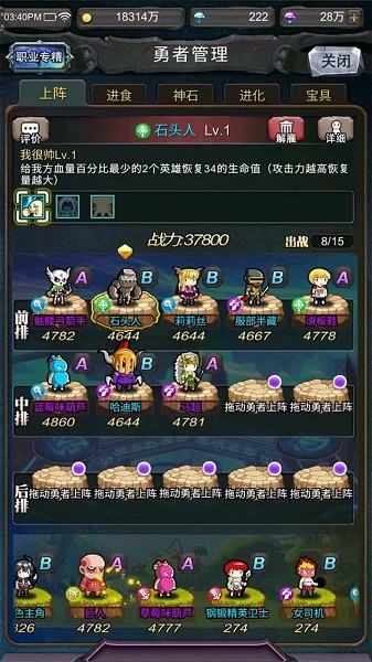 3、玩家需要召集来自不同种族的勇者组建最强冒险小队。通过合理搭配职业组合和技能连携,挑战越来越强大的关卡Boss。每次胜利都能获得丰厚宝藏奖励,包括稀有装备、强化材料和特殊道具等。