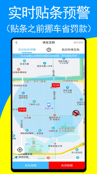 贴条之前挪车罚款:基于LBS定位技术,当监测到交警在附近执法时,立即推送预警信息,为车主争取挪车时间避免处罚