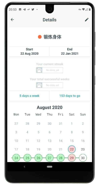 3、简洁高效的操作流程大大降低使用门槛。用户只需为每个习惯选择代表颜色、设定目标完成日期,并确定每周执行频率,系统就会自动完成后续追踪工作。这种极简设计让习惯管理变得轻松无负担。